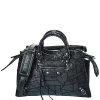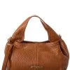 - Eartha Top Handle Pearl Lady Leather Satchel in swan leather and gold-tone hardware with stud embellishments and exterior pocket
