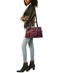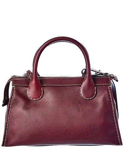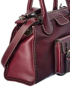 - Edith Day Medium Leather Satchel in red leather with gold-tone hardware and exterior pocket