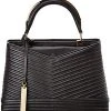 - Edith Day Medium Linen & Leather Satchel in natural linen canvas and white leather with gold-tone hardware, exterior pocket and wrapped handles