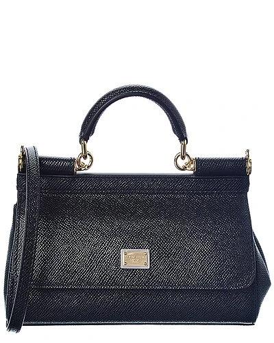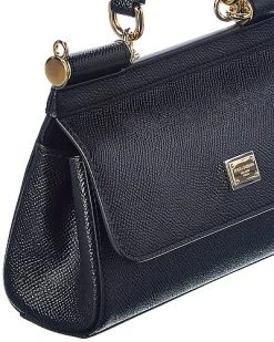 - Sicily Small Leather Satchel in black leather with gold-tone hardware