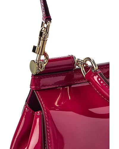 - Sicily Small Patent Satchel in red patent leather with gold-tone hardware