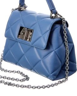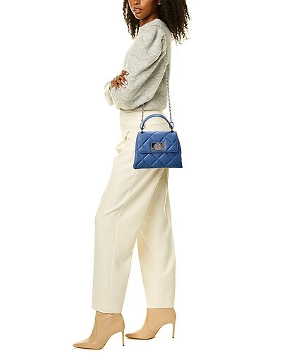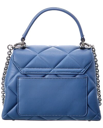 - 1927 Mini Top Handle Leather Satchel in onda quilted leather and silver-tone hardware with chain strap and exterior pocket