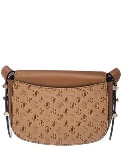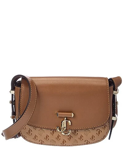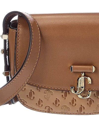 - Varenne Small Leather Satchel in caramel monogram faux leather and genuine leather with gold-tone hardware and logo accent
