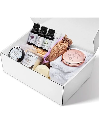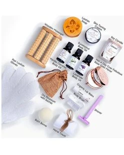 - 90g organic loofah soap 4g lip balm pair fuzzy socks exfoliating shower gloves purple shaver dry potporri flowers sachet hand towel body brush not a day over fabulous rose gold mirror wooden massager