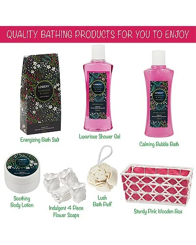- Design details: complete spa gift set – invigorate body and soul with a luxurious at-home spa treatment! beautifully packaged in a chic basket, this bath gift set makes for an extraordinary gift, and adds a lovely touch to the bathroom. rosemary mint scent – start your day right with a refreshing, decadent bath! the crisp, herbal notes in this awakening fragrance are a sheer treat to soul and spirit. additionally, rosemary & mint provide anti-inflammatory properties to help soften and soothe dry or irritated skin. let your stress evaporate as you pamper your body with lovery’s luxurious products. great for your skin – why waste money on chemical-laden skincare that may harm your body and the environment? these luxury bath and body works basket bath accessories are paraben-free and never tested on animals. in addition, they’re made with shea butter & vitamin e to soothe, moisturize and protect your skin.