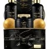 - 200ml shower gel; 200ml bubble bath; 120ml body lotion; 2 – 150g bath bombs; 100g bath salts; reusabe eye mask; silver cosmetics bag with mirror