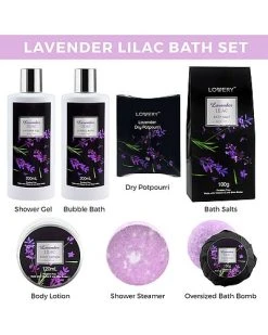 - 200ml Shower Gel 200ml Bubble Bath 100g Aromatherapy Shower Steamer 150g Bath Bomb 120ml Body Lotion 100g Bath Salts Dry Potpourri with Sachet Handwoven Basket for DZcor or Storange Ribbon and Hangtag