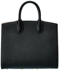 - Studio Leather Satchel in black leather with gold-tone hardware and Gancini detail