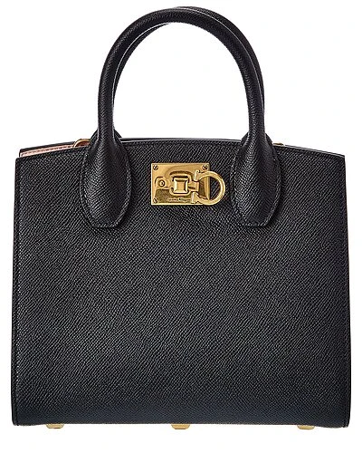 - Studio Leather Box Bag in black leather and gold-tone hardware with Gancini detail