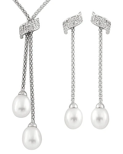 - White freshwater pearls measure approximately 7-9mm