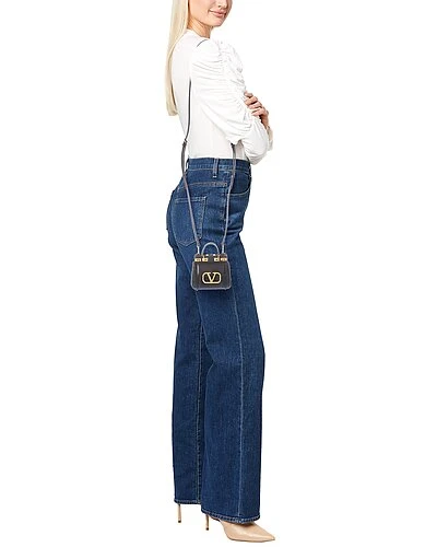 - Rockstud Alcove Micro Grainy Leather Satchel in black leather and gold-tone hardware with VLogo accent and front pouch pocket
