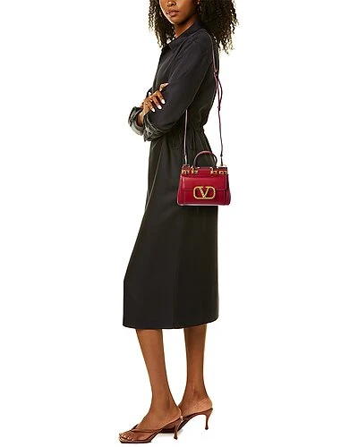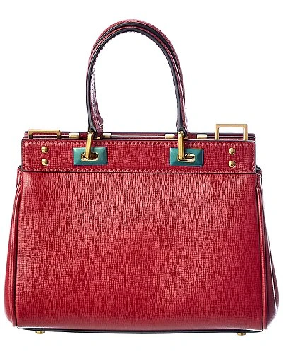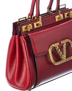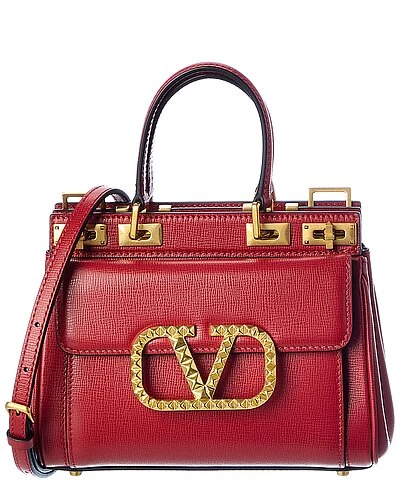 - Rockstud Alcove Small Grainy Leather Satchel in red leather and gold-tone hardware with front pouch pocket