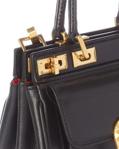 - Rockstud Alcove Small Grainy Leather Satchel and gold-tone hardware with front pouch pocket