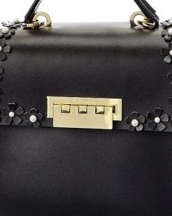 - Design details: gold-tone hardware, exterior pocket and flower and pearl embellishments