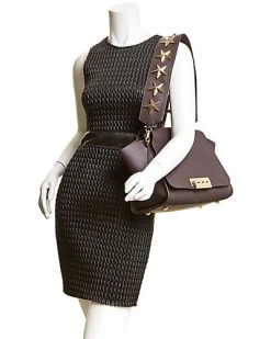 - Exterior design details: gold-tone hardware, exterior slide pocket on back, star-embellished shoulder strap