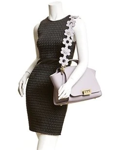 - Exterior design details: gold-tone hardware, exterior slide pocket on back, floral appliques at shoulder strap